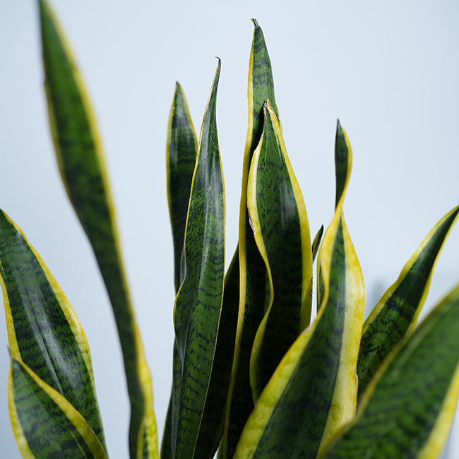 This houseplant has perennial, fleshy, lance-shaped leaves in an upstanding position. The leaves are horizontally marbled in dark-green color with yellow edges. They are almost 18 inches long and can grow up to 47 inches. Some of the mature plants also bear greenish-white plants.